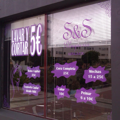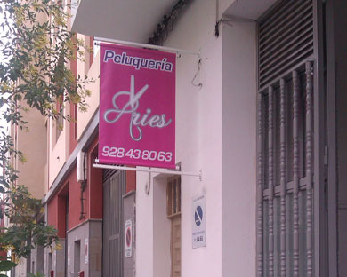 Vinilo decorativo, peluq Aries, Barrio de la Galera, Gran canaria.